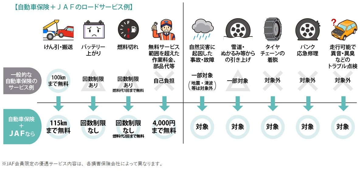 保険は「車に」、しかしJAFは「人に」かかるサービスです!