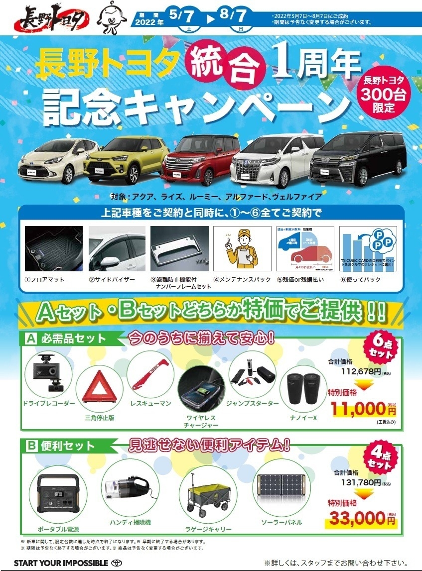 対象車種はアクア・ライズ・ルーミー ※アルファード・ヴェルファイア終了
