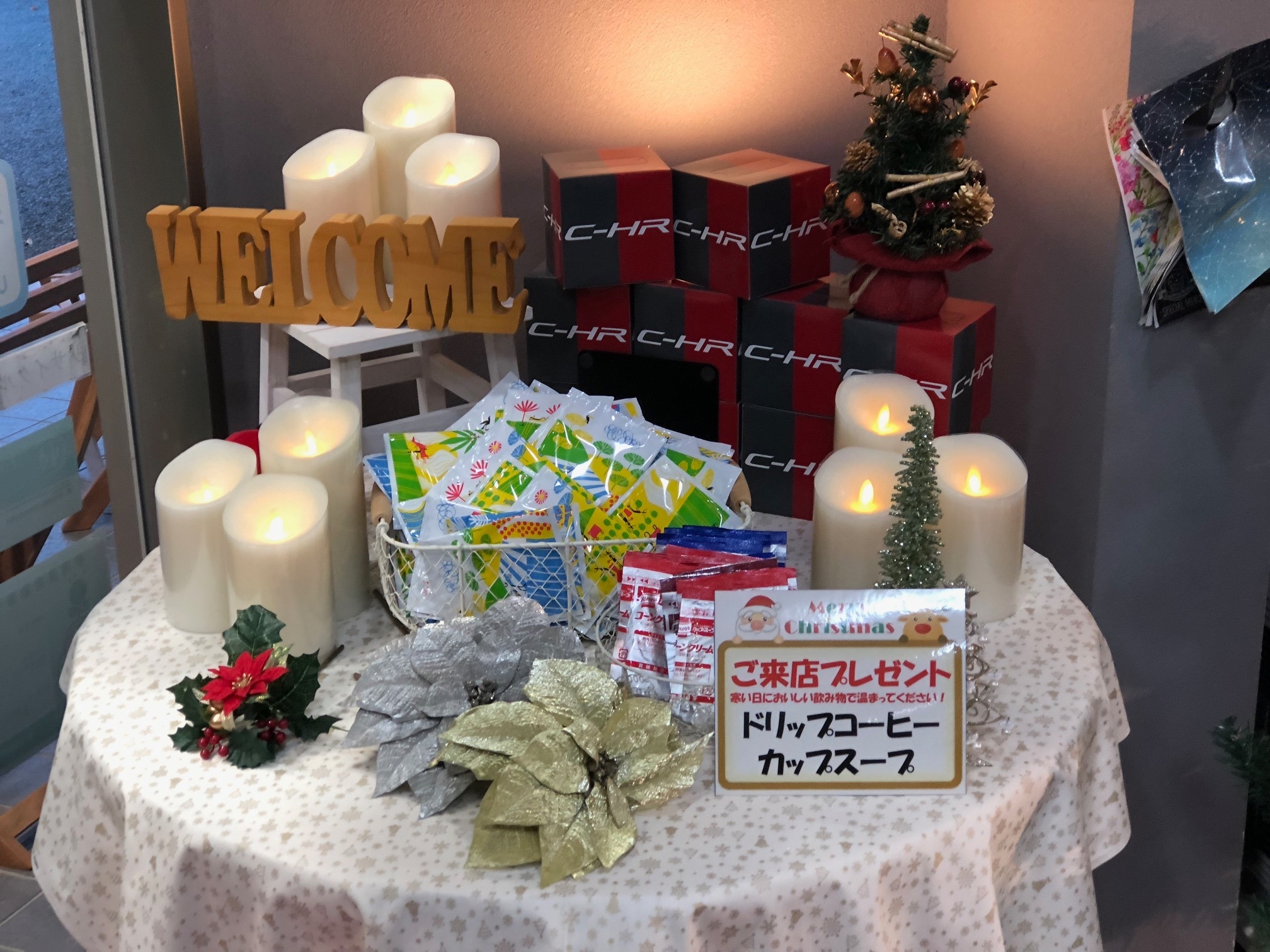 ご来店頂いた方にはドリップコーヒーやカップスープをプレゼントしております。