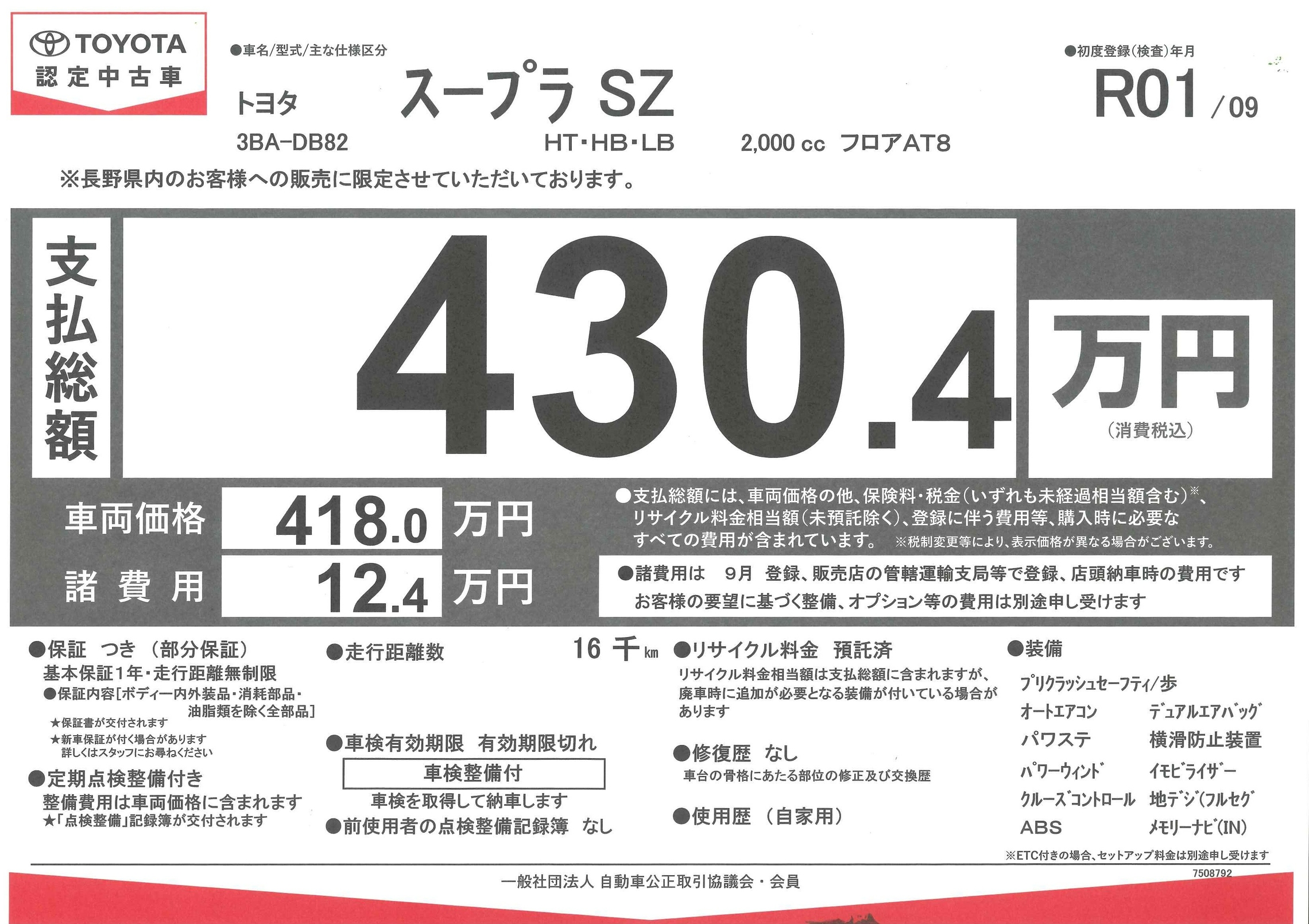 ※こちらの車両は長野県にお住いのお客様へのみ