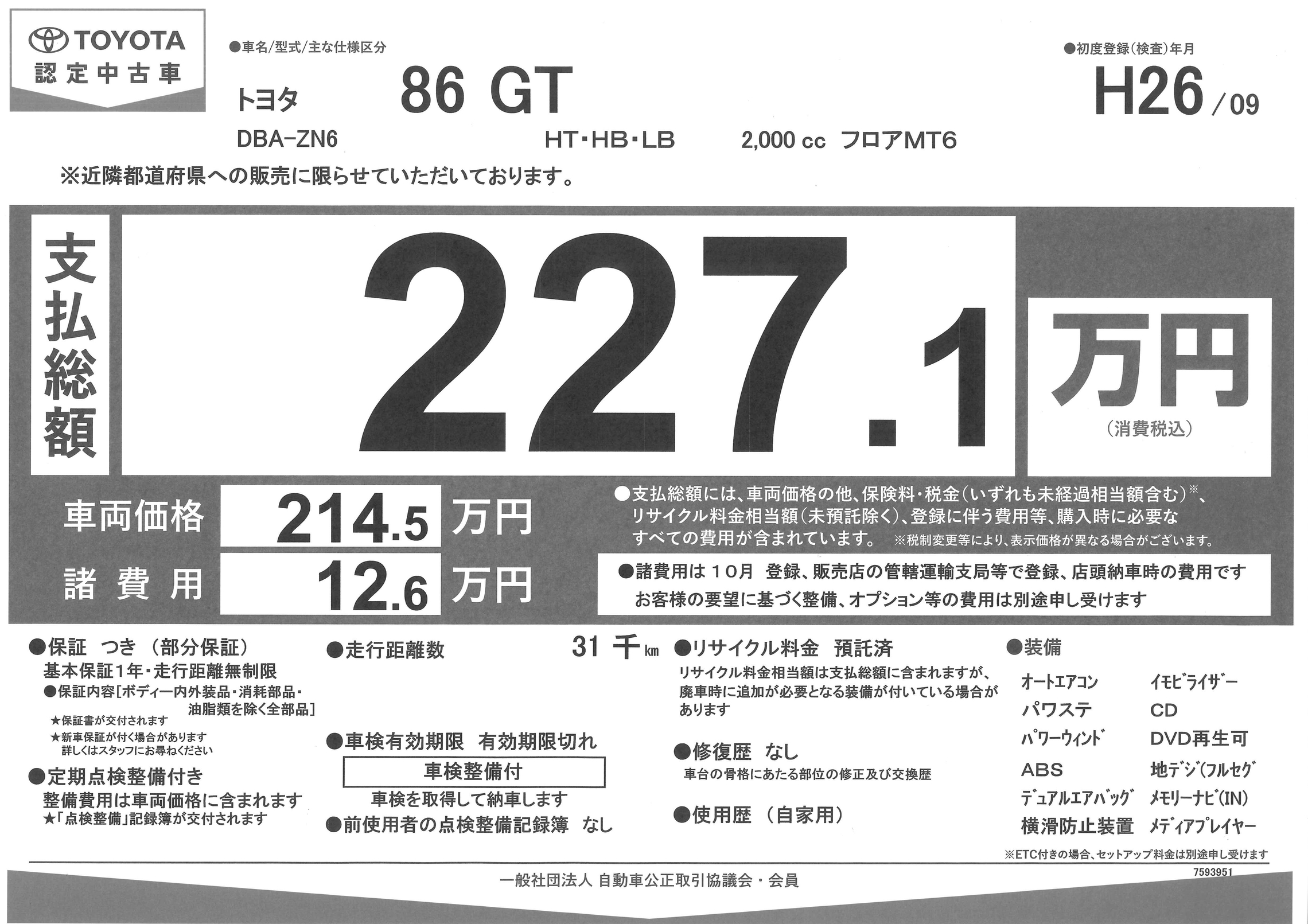 86 GTグレード 6速MT です!