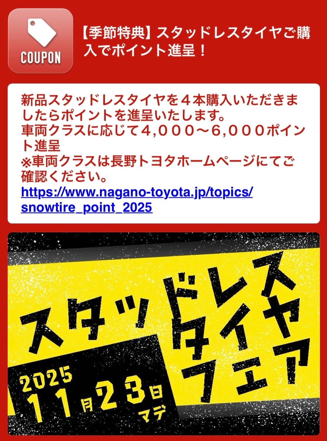 『スタッドレスタイヤ』キャンペーンのご紹介です!