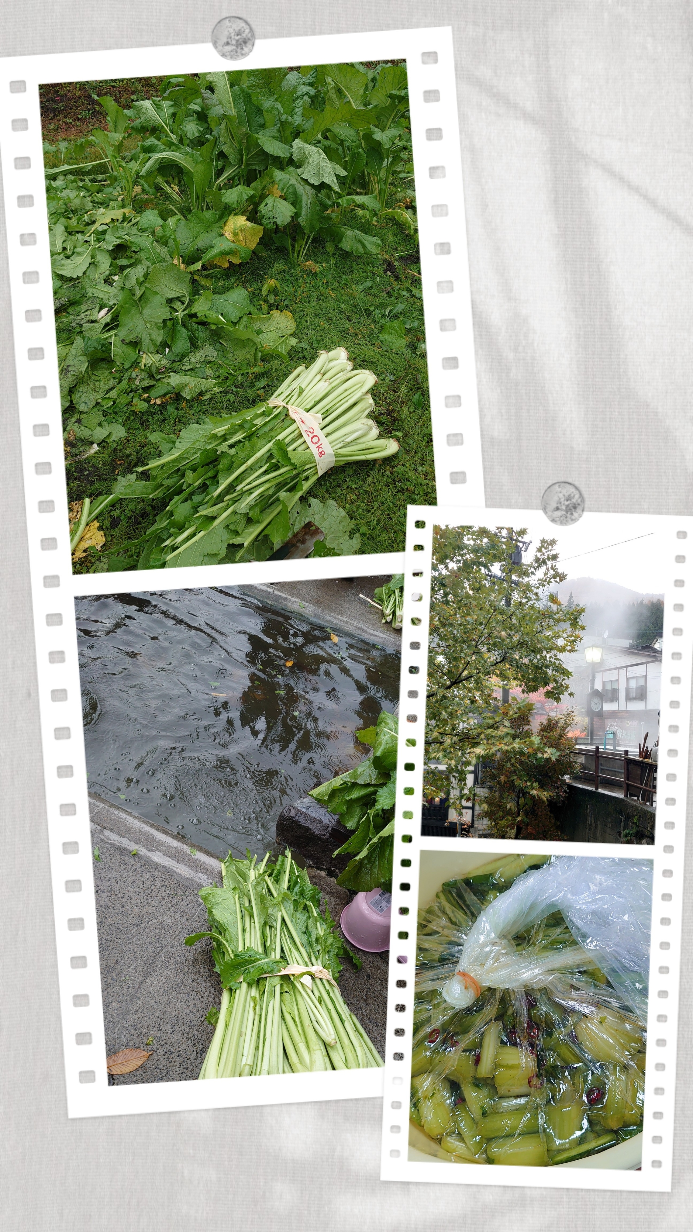 野沢菜にとっては霜が降りると「のりがのる」より美味しくなります。