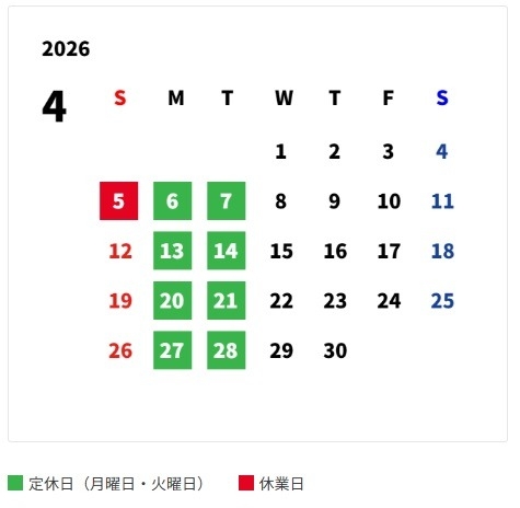 4月の営業日カレンダーのご案内