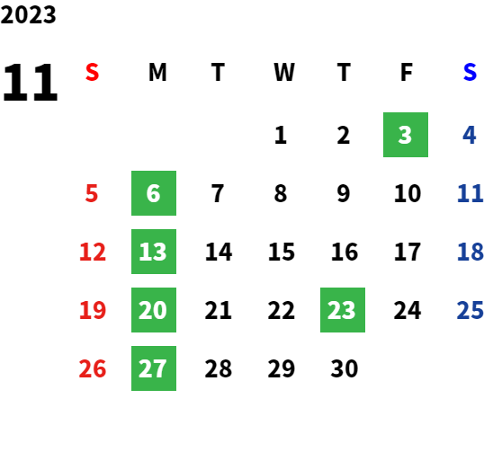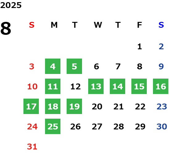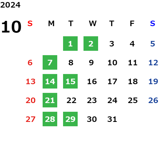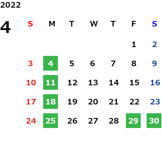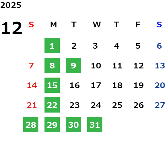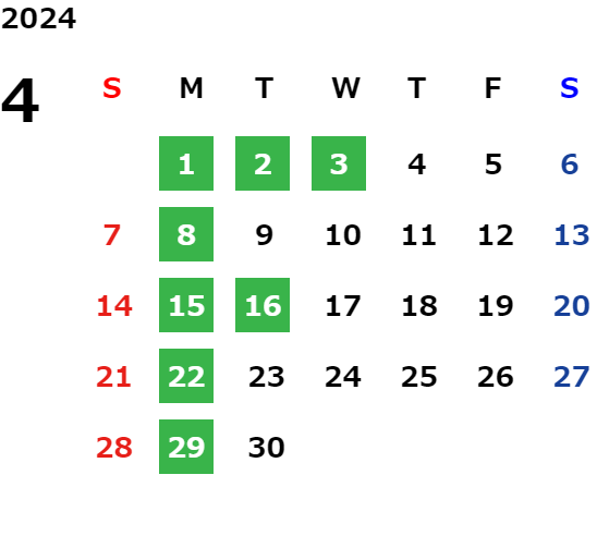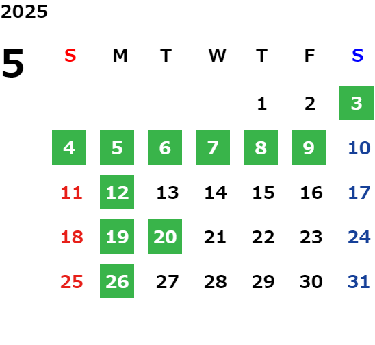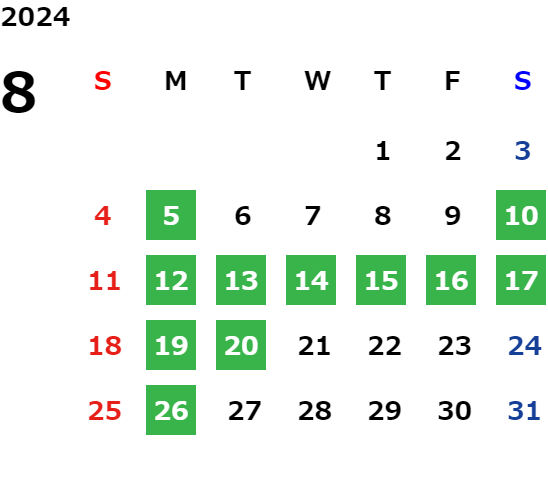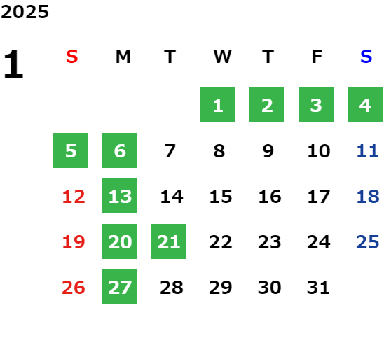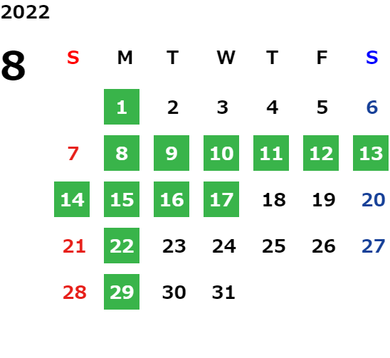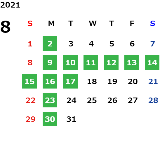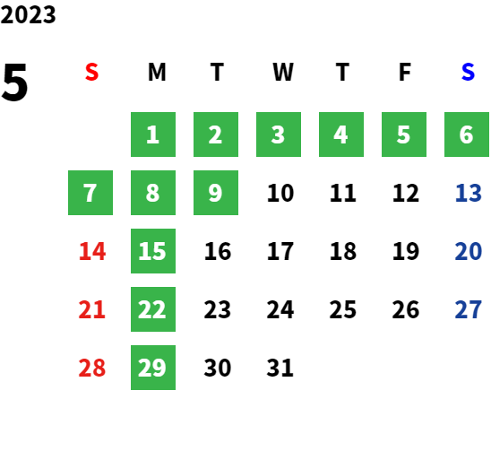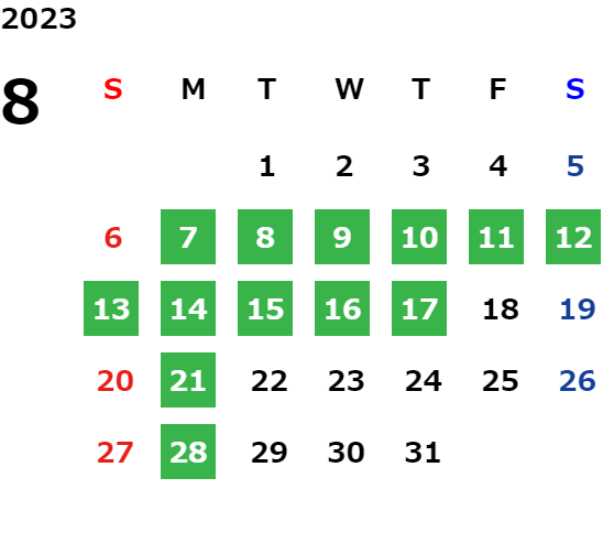 営業日カレンダー