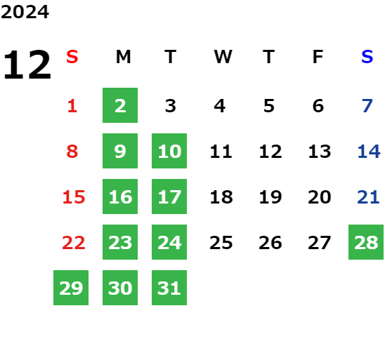 営業日カレンダー
