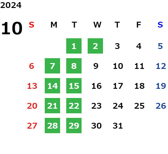 ※火曜日の営業日はカレンダーをご確認下さい