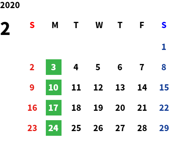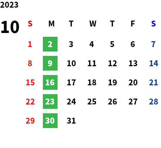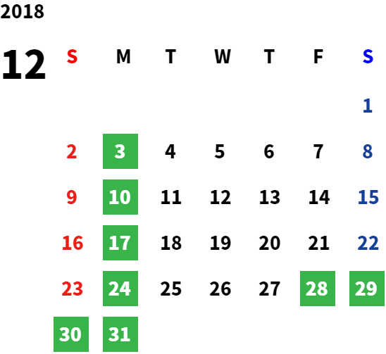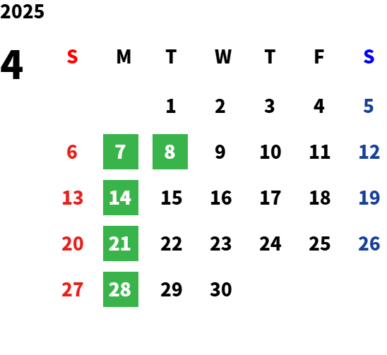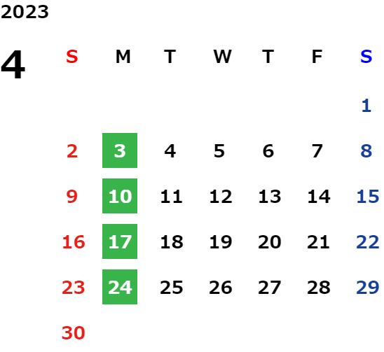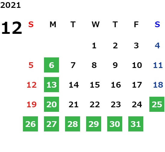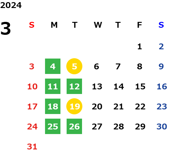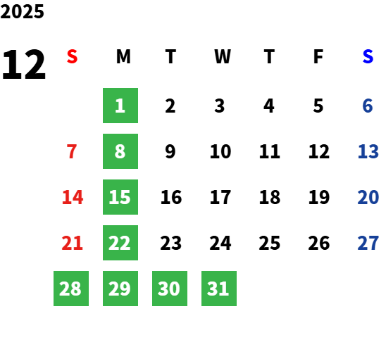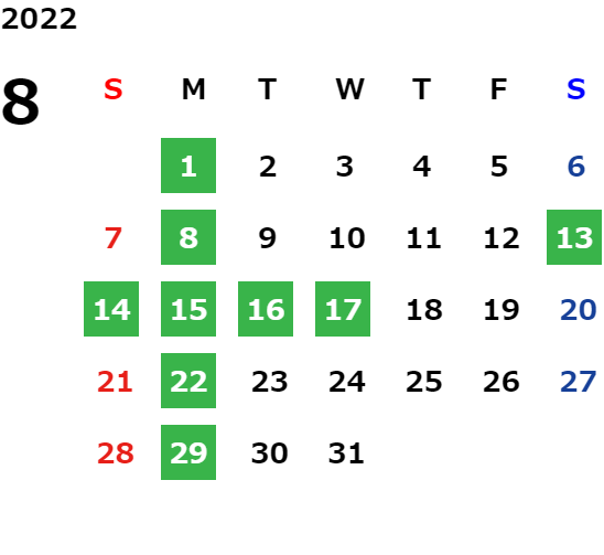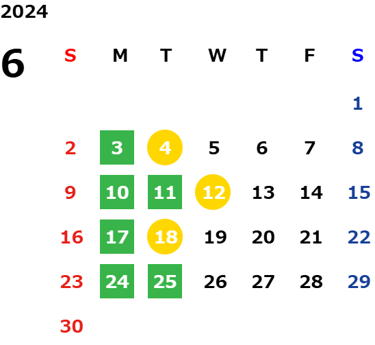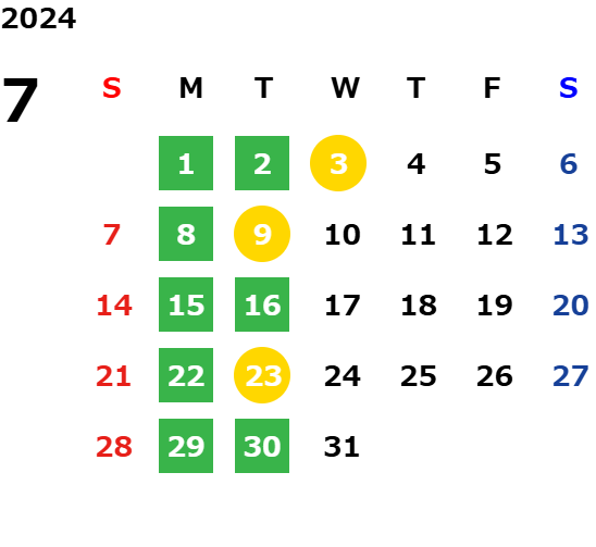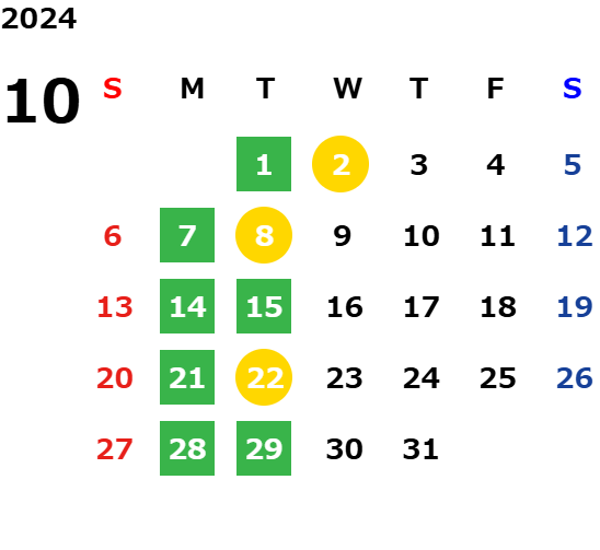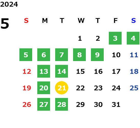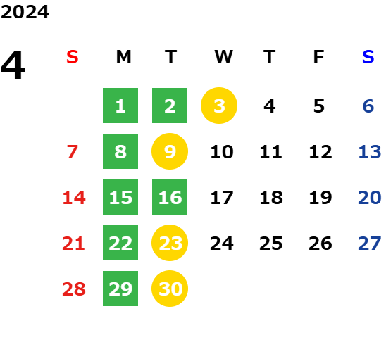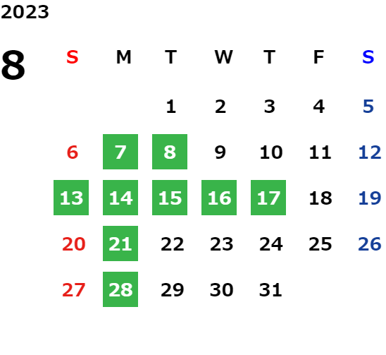 火曜日以降の営業日につきましては下記カレンダーをご確認下さい