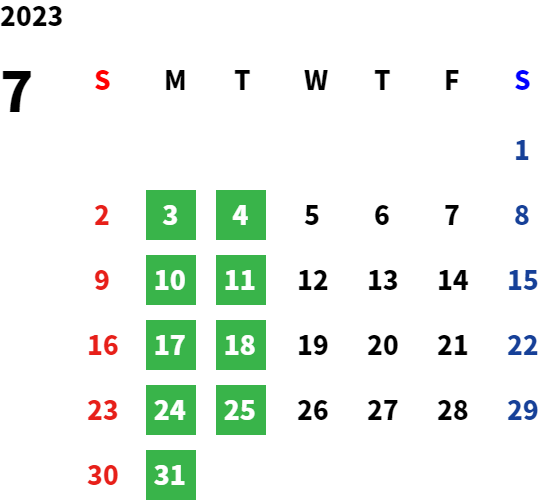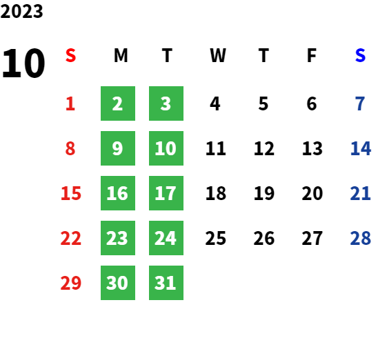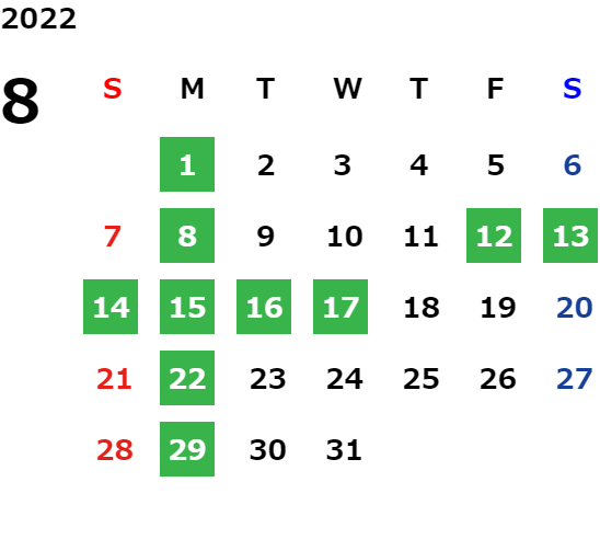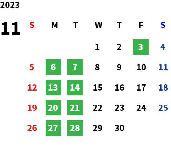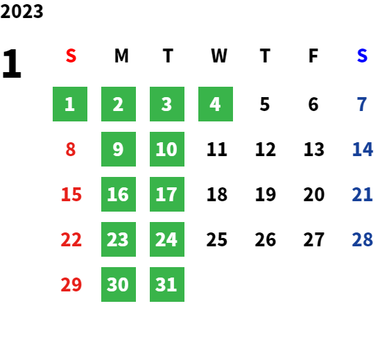 営業日カレンダー