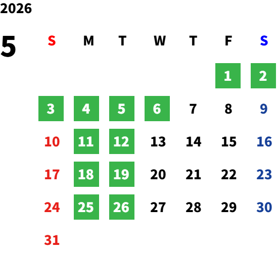 但し2026年より日・火曜日については店舗HPカレンダーをご確認下さい
