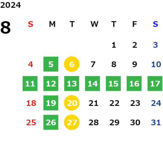 営業日カレンダー