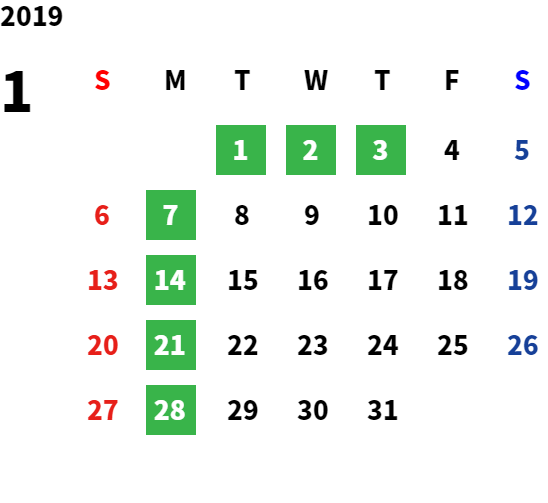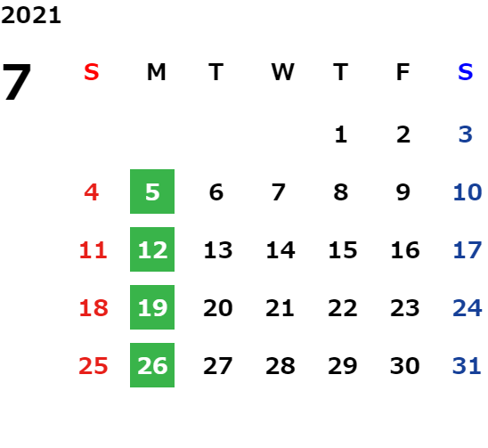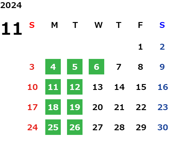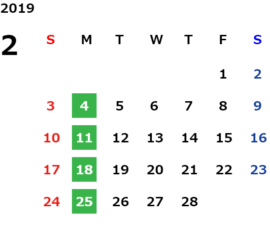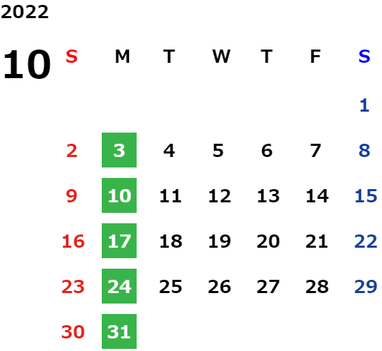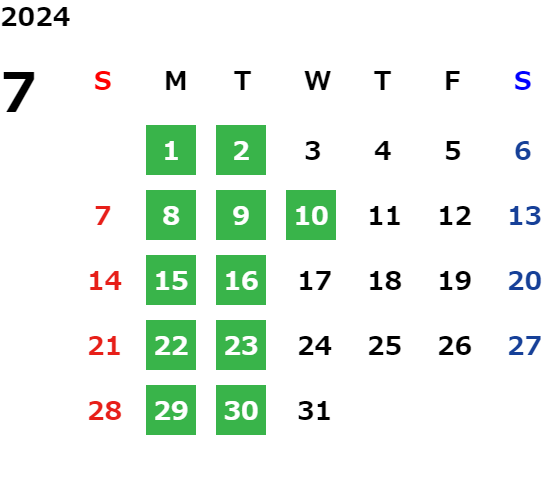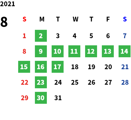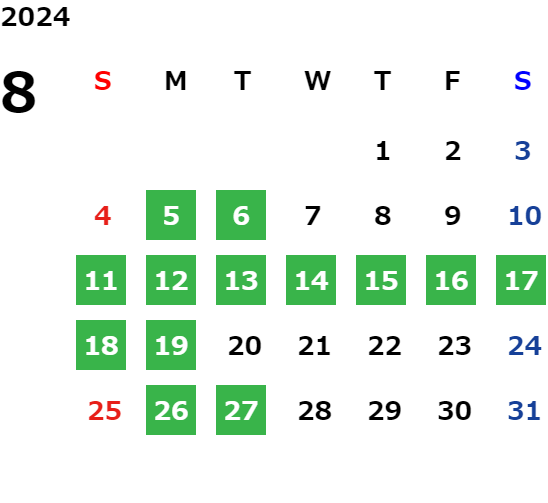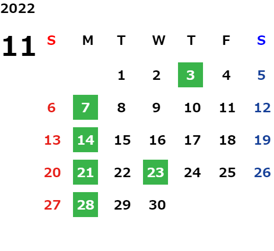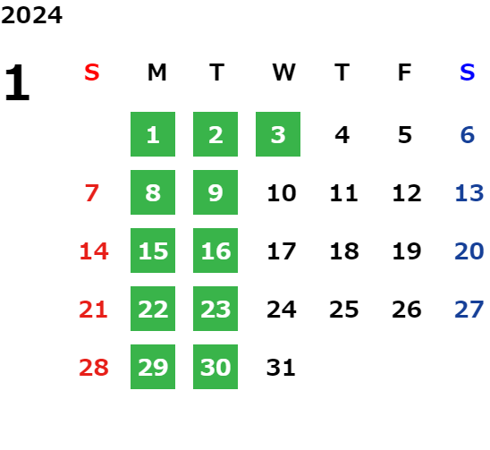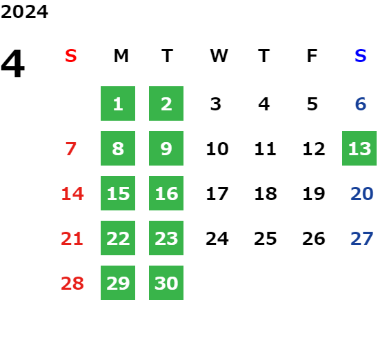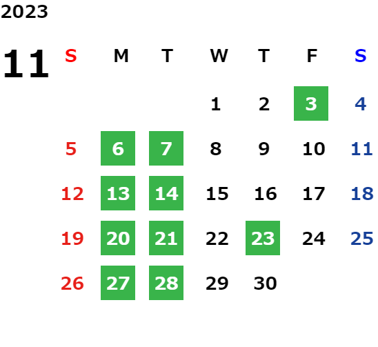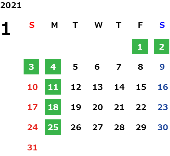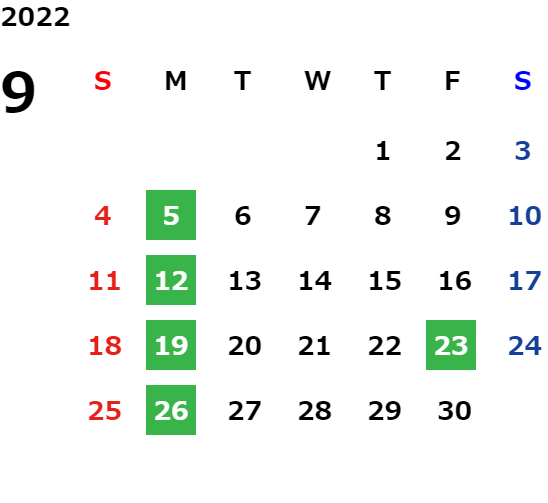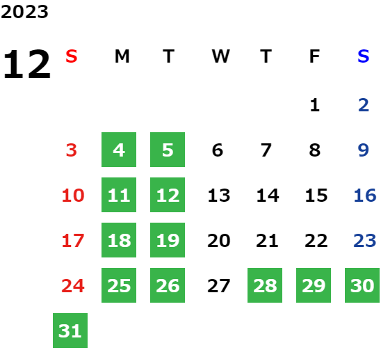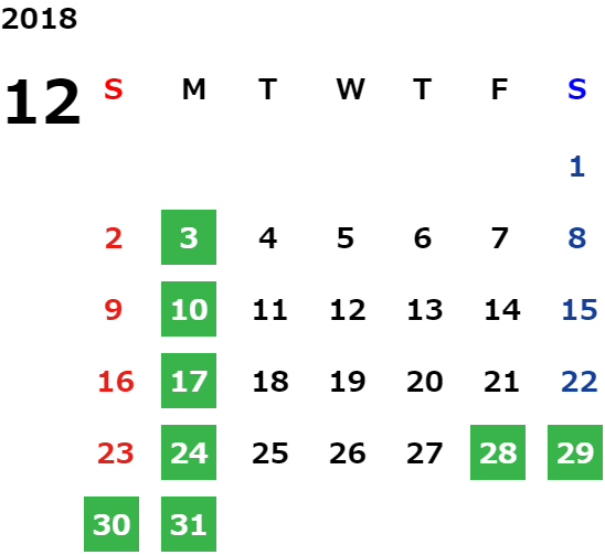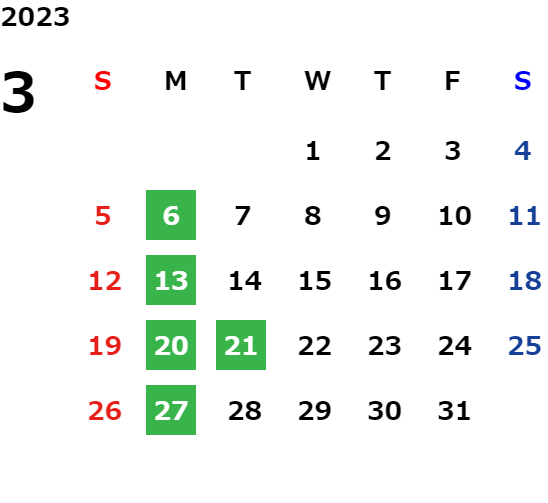 営業日カレンダー