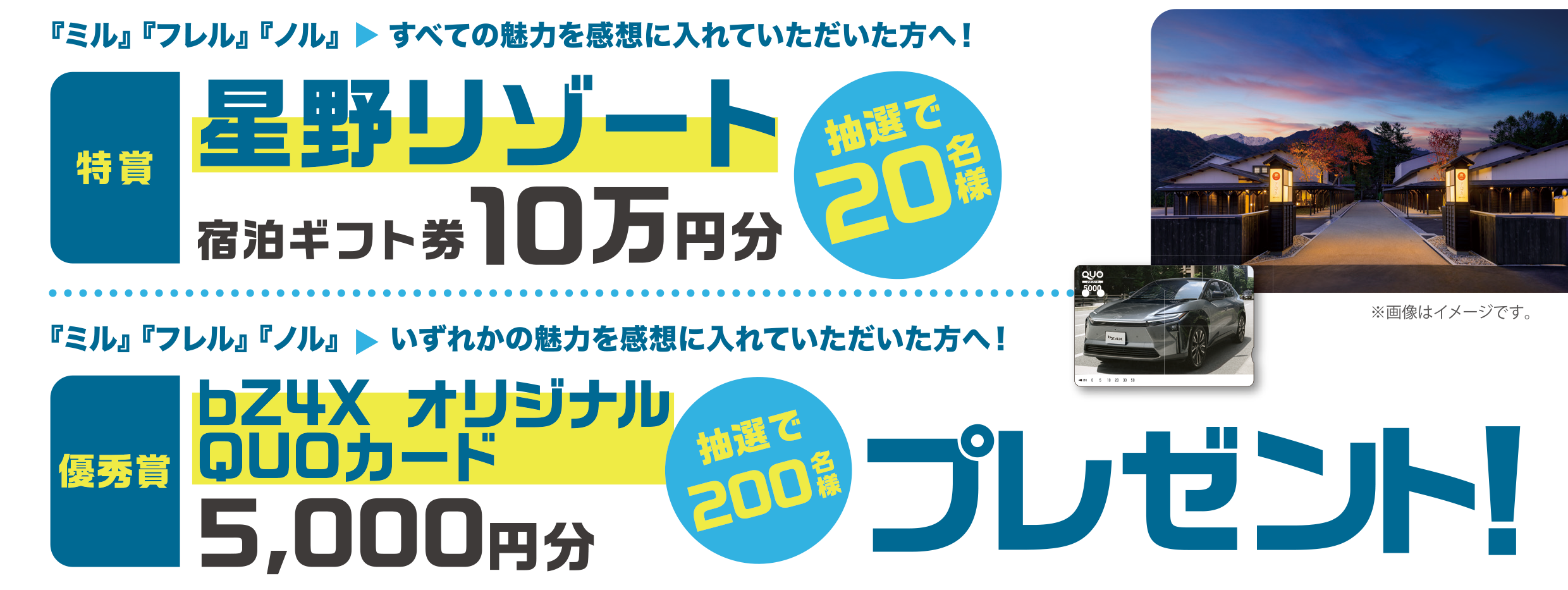 優秀賞:bZ4XオリジナルQUOカード5,000円分×200名様(全国)