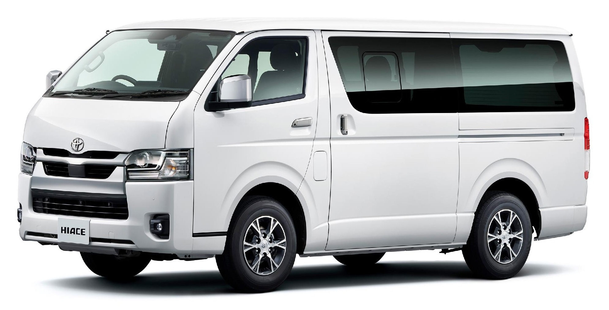 Photo:VAN・2WD・2800ディーゼル・標準ボディ・スーパーGL。ボディカラーのプラチナホワイトパールマイカはメーカーオプション。アルミホイール、Bi-Beam LEDヘッドランプ、デジタルインナーミラー、ディスプレイオーディオ(コネクティッドナビ対応)Plusはメーカーオプション。